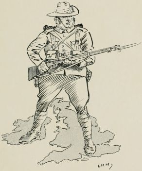"'Friends! Fellow citizens! Gallant an' patriotic defenders of our island 'ome! You are unique in the history of this terrestral sphere. There is not another country,' ses he, 'as would treat you as you're treated here. Yer self-sacrificin' spirit is the joy o' me heart, an' if there's not enough troops to go round I will allow you to line the back streets when processions is on, but yer "present arms" is a disgrace an' yer marchin' past makes me cold down the spine. Yer shooting—well, we will pass that. But for your sense o' duty the curse of conscription would be weighin' on us, so let me point out the necessity of keeping your numbers up.'