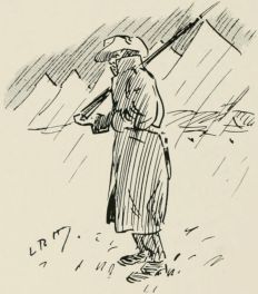 Thursday.—Annual inspection. Filthy day. Inspected every ten minutes, with slight interval for showers. Was hurried off to a piquet. Rushed out patrols and sentries somewhere. Got told to alter 'em. If you wanted to know anything you were told to ask some one else. Always the same game. Hardly a soul knows what they're supposed to be doing. You're not certain yourself, and if you are, you haven't time to tell your men. So everyone produces little red books, and studies "What to do and How to do it," by "One who thinks he knows." No wonder the regulars jibe at us; it's astonishing we're as good as we are. Everybody a bit off to-day.