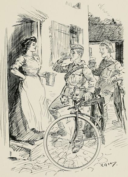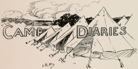 Saturday.—'Ad a bit of a row with the old man afore starting; 'e wants me to give mother 'arf my camp pay, same as if it were wages. Told 'im I would if I could, so I expect there'll be more rows when we gets back. Said good-bye to Mary, an' told her if I 'eard of any goings on with Bill Jenkins, as could go to camp if 'e wanted to right enough, I'd spoil 'is face for 'im. She said I ought to be walkin' 'er out instead o' wastin' my time playin' at soldiers, an' that Bill's a very sensible chap. I ses as 'e's a waster an' a perfect bloomin' idjet at drill, always a throwin' us out. Jawin' with 'er made me a bit late for parade, but our leftenant didn't seem to mind for a wonder. Usually 'is temper's awful if things don't go as he likes. He cocked 'is bloomin' eye-glass at me, tho', in a way as made me think 'e was going to start cussin'. Twasn't bad with all the village looking on, an' we marched off in style.