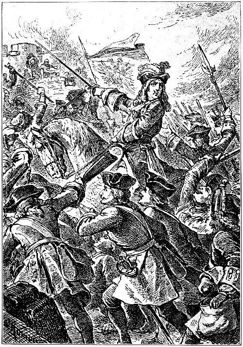 In the meantime the main army of the Turks, under command of the Grand Vizier, Kora Mustapha, had entirely surrounded Vienna. Such peril had never before befallen a German city. All Germany was in a fever of excitement. It was plain that, should Vienna fall, the whole German empire would be open to the marauding and murdering infidels; and God knows what might come next. But it turned out differently. The mayor of Vienna, Rudiger von Starhemberg, was a good soldier as well as administrator. Here he encouraged, there led an attack; and the Viennese citizens and students fought like heroes under his leadership. Although the Turks stormed the walls and had even made a breach here and there, they were obliged to retreat before the defenders, who were fighting for their dearest and most sacred possessions. The good Viennese, however, would have been obliged at last to succumb, had not help come from the Electors of Bavaria and Saxony, the Emperor’s troops under Duke Charles of Lorraine, and with them, of course, the chief of the dragoon regiment, Margrave Louis of Baden, with “the little Capuchin,” Prince Eugene, all led by King John Sobieski of Poland. The Capuchin was already become a mighty hero; Eugene had smelled powder, and even the dragoons, who had at first regarded him doubtfully, had quite changed their minds about him.