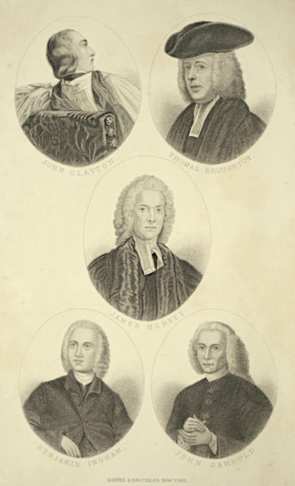 A marvellous work was accomplished by the Wesley brothers and by Whitefield; but it is a great mistake, and not a just acknowledgment of the grace of God, to regard the results of the revival of religion in the Oxford University, as confined to Methodism. Contemporaneous Reformers, raised up by Providence, are seldom all employed in the same kind of work. At the beginning of the Christian era, God “gave some, apostles, and some, prophets, and some, evangelists, and some, pastors, and teachers, for the perfecting of the saints, for the work of the ministry, for the edifying of the body of Christ” (Ephesians iv. 11, 12). Luther, Zuinglius, Melancthon, Œcolampadius, Erasmus, Calvin, Knox, Ridley, Latimer, and Cranmer were all engaged, at the same time, in the same great and glorious reformation; but the services they rendered were as various as the dispositions and talents of the men themselves. So in regard to the movement in the Oxford University. Among the Oxford Methodists, the Wesleys and Whitefield will always be pre-eminent; but a great work was also done by their associates. Clayton’s High-Churchism was objectionable; but it is not unreasonable to indulge the hope, that, his earnest piety exercised a useful influence upon the clergy among whom he lived, and especially upon the young gentlemen who were favoured with the instructions of his school. Ingham, as an evangelist, was exceedingly successful among the masses in the North. The Moravian Church owes a debt of incalculable gratitude to Gambold, for checking and correcting its early religious follies. Broughton was efficiently employed in promoting the translation of the Bible, in the work of Home and Foreign Missions, in the distribution[v] of religious tracts, and in the education of the children of the poor, at a period when the present principal societies for such objects did not exist. Hutchins, though retaining, at least, a few of his High-Church doctrines, was a spiritually-minded, earnest Christian; and, in the important office which, for so many years, he held in Lincoln College, could hardly fail in moulding the minds and hearts of some of the young students there. And Hervey was one of the first clergymen of the Church of England, in the last century, who turned the attention of the upper classes of society to religious matters. These were not trifling services. Do they not deserve to be recorded?