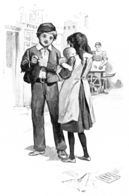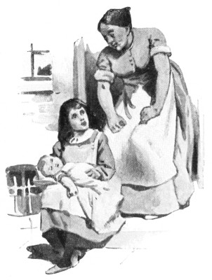 "Now aren't you an unnatural girl!" cried Mrs. Floss. "Why shouldn't you take the poor baby with you? Wouldn't he like a sight of the park and the green trees as well as you? If you take the baby with you, I'll give you each another penny, and an extra one for the baby, and you can all have a good time; now what do you say?"