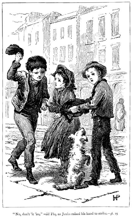 “Come, Flo, do,” said Jenks, “don’t waste time with that little sight o’ misery any more, ’ees ony a street cur.”