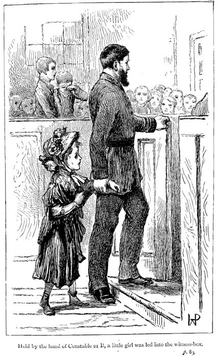 Flo’s ragged scrap of a shawl was accordingly unfastened and tied round the savoury dish, and Dick, being appointed bowl-bearer, the children trudged off as rapidly as possible in the direction of Duncan Street. They were all three intensely merry, though it is quite possible that a close observer might have remarked, that Dick’s mirth was a little forced. He laughed louder and oftener than either of the others, but for all that, he was not quite the same Dick who had stared so impudently about him an hour or two ago in Regent Street. He was excited and pleased, but he was no longer a fearless boy. An hour ago he could have stared the world in the face, now even at a distant sight of a policeman he shrank behind Jenks, until at last that young gentleman, exasperated by his rather sneaking manner, requested him in no very gentle terms not to make such a fool of himself.
