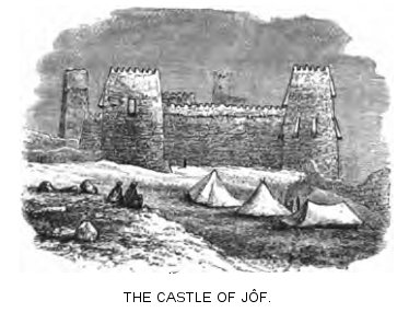 The Jôf oasis—We are entertained by Ibn Rashid’s lieutenant—A haunch of wild cow—Dancing in the castle—Prayers—We go on to Meskakeh |