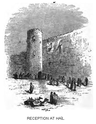 The next few days of our life at Haïl may be briefly described. Wilfrid and Mohammed went every morning to the mejlis, and then paid visits, sometimes to Hamúd, sometimes to Mubarek, sometimes to the Emir. A slave brought us our breakfast daily from the kasr, and a soldier came to escort us through the streets. Mohammed had now made acquaintances of his own, and was generally out all day long. I stayed very much in doors, and avoided passing through the streets, except when invited to come to the castle, for we had agreed that discretion was the better part of valour with us. That there was some reason for this prudence I think probable, for though we never experienced anything but politeness from the Haïl people, we heard afterwards that some among them were not best pleased at the reception given us by the Emir. Europeans had never before been seen in Nejd; and it is possible that a fanatical feeling might have arisen if we had done anything to excite it. Wahhabism is on the decline, but not yet extinct at Haïl; and the Wahhabis would of course have been our enemies. In the Emir’s house, or even under p. 228charge of one of his officers, we were perfectly safe, but wandering about alone would have been rash. The object, too, would have been insufficient, for away from the Court there is little to see at Haïl.