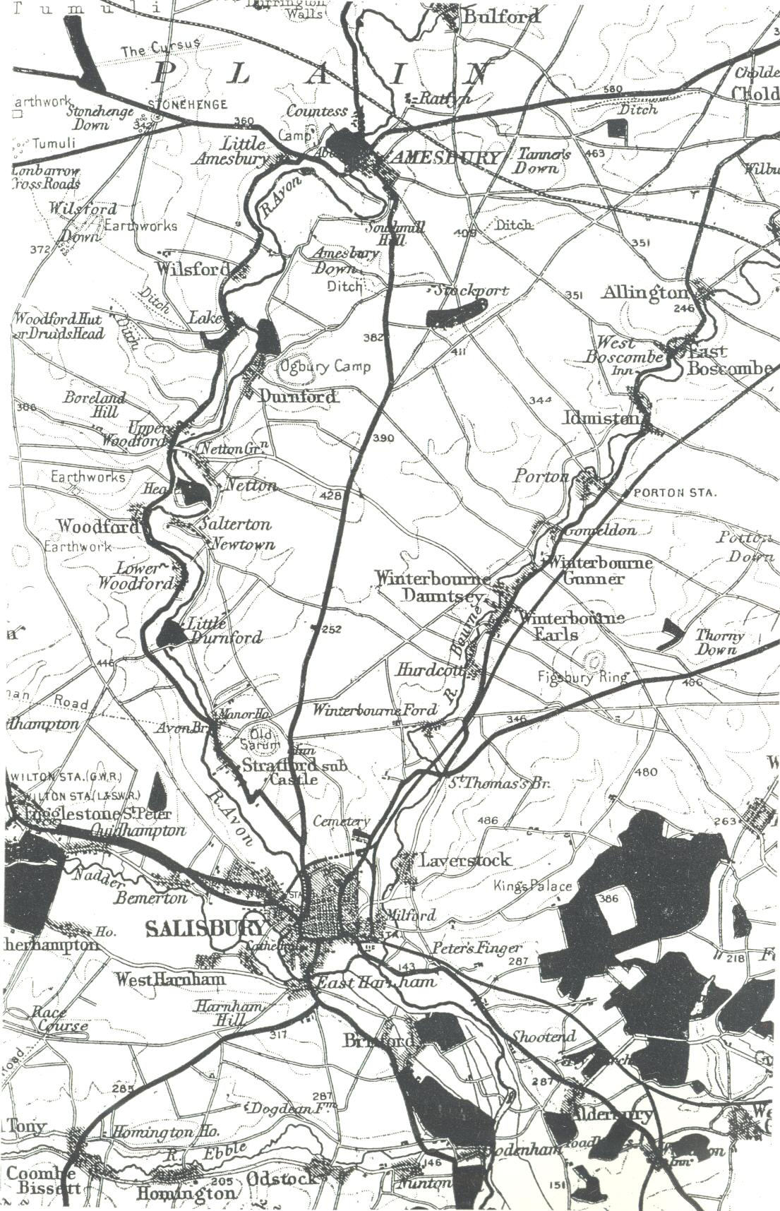 Returning to Salisbury from Amesbury, and taking “the Bourne” route, there is a beautiful drive winding along the banks of the Avon. I give a short account of the most interesting places the traveller meets with on his homeward journey.