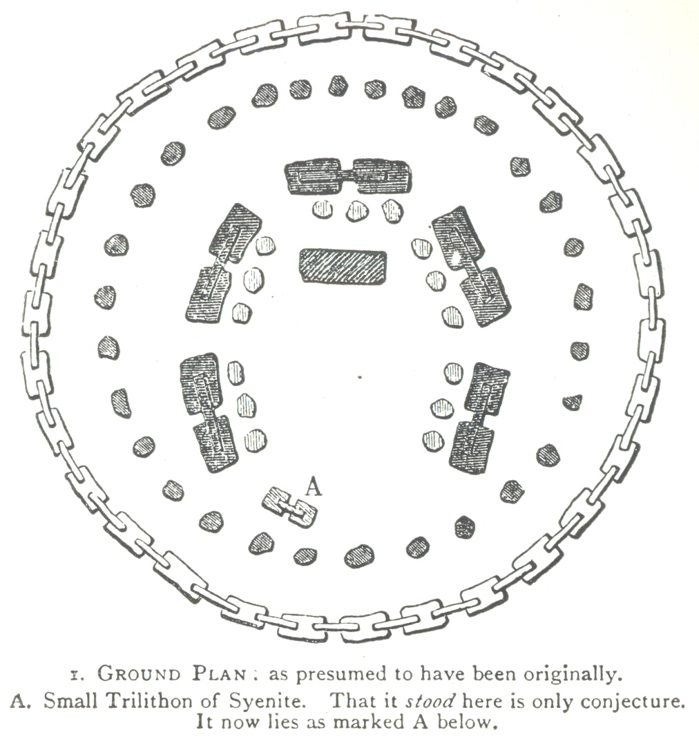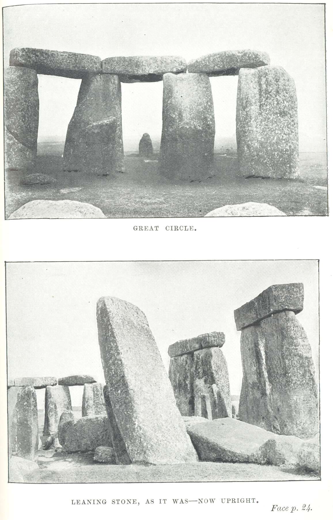 p. 11There is a fanciful legend, told by an old writer called Geoffrey of Monmouth, about Stonehenge. He says that Ambrosius, wishing to commemorate those who had fallen in battle, thought fit to send for Merlin the Wizard, to consult him on the proper monument to be erected to the memory of the slain. On being interrogated Merlin replied, “Send for the ‘Giants’ Dance,’ which is in Killarus (Kildare), a mountain in Ireland; they are stones of a vast magnitude, and if they can be placed here quite round this spot of ground they will stand for ever.” At these words Aurelius laughed and said, “How was it possible to remove such stones from so distant a country, and had not Britain as good stones?” Merlin replied “that they were mystical stones and had a medicinal virtue,” whereupon the Britons resolved to send for them and to risk a battle. Upon landing in Ireland, the removal of the stones was violently opposed by Gillomanius, a youth of wonderful valour. At the head of a vast army, he exclaimed, “While I have life they shall not take from us the least stone of the Giants’ Dance.” A battle ensued, which was won by the Britons. They then proceeded to Killarus, where the sight of the stones filled them with joy and admiration, and, while they were all standing round, Merlin asked them to try and remove the stones. Their efforts proving futile, he laughingly proceeded with his own contrivances, and took down the stones with incredible facility. This done, they set sail to Britain, and repaired to the burial-place with the stones, Aurelius ordering Merlin to get them up in the same manner as they had been in the mountain of Killarus, which he accordingly did.