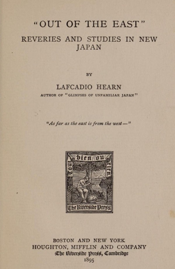 But one day they all came back to me—just for a moment. I was in Yokohama, gazing once more from the Bluff at the divine spectre of Fuji haunting the April morning. In that enormous spring blaze of blue light, the feeling of my first Japanese day returned, the feeling of my first delighted wonder in the radiance of an unknown fairy-world full of beautiful riddles,—an Elf-land having a special sun and a tinted atmosphere of its own. Again I knew myself steeped in a dream of luminous peace; again all visible things assumed for me a delicious immateriality. Again the Orient heaven—flecked only with thinnest white ghosts of cloud, all shadowless as Souls entering into Nirvana—became for me the very sky of Buddha; and the colors of the morning seemed deepening into those of the traditional hour of His birth, when trees long dead burst into blossom, and winds were perfumed, and all creatures living found themselves possessed of loving hearts. The air seemed pregnant with even such a vague sweetness, as if the Teacher were about to come again; and all faces passing seemed to smile with premonition of the celestial advent.