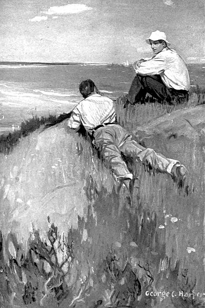 They turned about, and arms went about each other’s waist and neck. They swung off across the fragrant fields, soft with the new mown grass, to the beach. For a while they were silent.