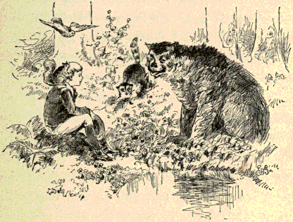 “Look here!” he added, in a low growl, aside to Toto, “I can’t stand much more of this. Where is Coon? He knows how to talk to people, and I don’t. I’m not accustomed to it. Now, when I go to see my grandmother, I take her a good bone, and she hits me on the head by way of saying thank you, and that’s all. I have a bone somewhere about me now,” said poor Bruin hesitatingly, “but I don’t suppose she—eh?”