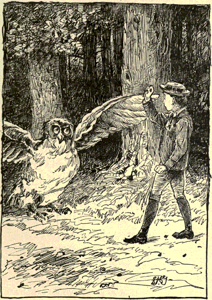 It was in this pretty place that Toto stopped. He sat down on a great cushion of moss near the pool, and began to whistle. Presently he heard a rustling in the tree-tops above his head. He stopped whistling and looked up expectantly. A beechnut fell plump on his nose, and he saw the sharp black eyes of a gray squirrel peering at him through the leaves.