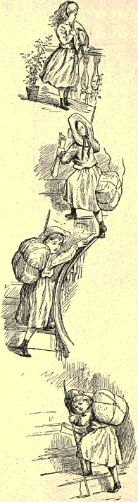 “Do you remember how you used to play ‘Pilgrim’s Progress’ when you were little things? Nothing delighted you more than to have me tie my piece-bags on your backs for burdens, give you hats and sticks, and rolls of paper, and let you travel through the house from the cellar to the house-top.”—Vide “Little Women.”