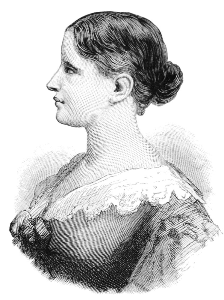We children used to call Mr. Sumner “the Harmless Giant;” and indeed he was very kind to us, and had always a pleasant word for us in that deep, melodious voice which no one, once hearing it, could ever forget. He towered above us to what seemed an enormous height; yet we were told that he stood six feet in his stockings,—no more. This impression being made on Laura’s mind, she was used to employ the great senator as an imaginary foot-rule (six-foot rule, I should say), and, until she was almost a woman grown, would measure a thing in her own mind by saying “two feet higher than Mr. Sumner,” or “twice as high as Mr. Summer,” as the case might be. I{199} can remember him carrying the baby Maud on his shoulder, and bowing his lofty crest to pass through the doorway. Sometimes his mother, Madam Sumner, came with him, a gracious and charming old lady. I am told that on a day when she was spending an hour at Green Peace, and sitting in the parlor window with our mother, Laura felt it incumbent upon her to entertain the distinguished visitor; so, being arrayed in her best white frock, she took up her station on the gravel path below the window, and filling a little basket with gravel, proceeded to pour it over her head, exclaiming, “Mit Humner! hee my ektibiton!” This meant “exhibition.” Laura could not pronounce the letter S in childhood’s happy hour. “Mamma,” she would say, if she saw our mother look grave, “Id you had? Why id you had?” and then she would bring a doll’s dish, or it might be a saucepan, and give it to her mother and say, with infinite satisfaction, “Dere! ’mooge you’helf wid dat!”