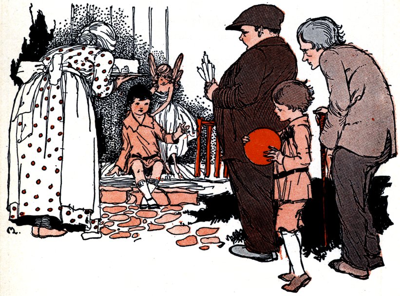 Danny-Do-Little was amused for he had not said a single word about the 116Clown’s suit, but he was so sorry to see him go that he looked rather sad, but the Clown tossed him his wonderful red bouncing ball and cried: