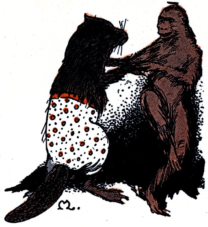 For one hour and sixteen minutes they sat warm and dry about the cheerful fire. Suddenly, Hug-Me-Tight began to hug them all in turn, and Big 105Brother Beaver and Chatter-Box danced a hornpipe and they all shouted: