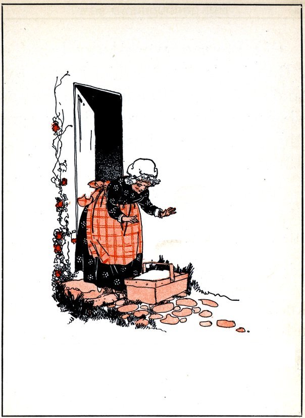 She was so happy, she swept the kitchen and washed the dishes, and would have forgotten the cookies, I am sure, if she had not heard a voice calling: