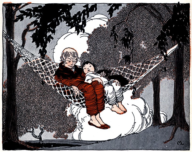 16All this time the gingerbread cookies looked out of their large currant eyes, and Fairy Help-You-Out came into the kitchen and whispered into Polly’s ear and Peter’s ear and the baby’s ear something about a picnic.