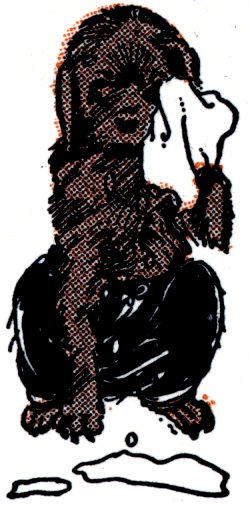 The Monkey put his paw up to his ear to listen.