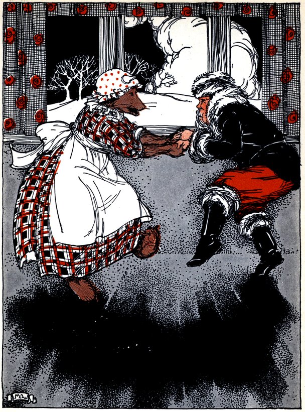 Just as she was thinking about her Thanksgiving dinner, “Rap, a, tap,” sounded on the door, and in came Tinkle Bell, the fairy elf. The little bell on his cap went “Tinkle, tinkle, tinkle,” and he said: