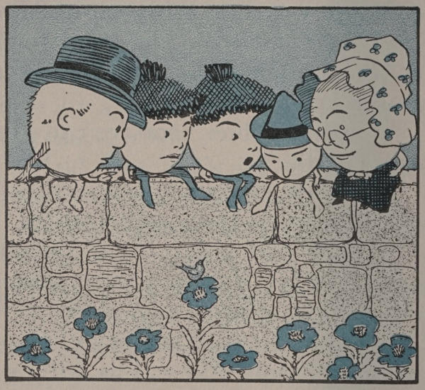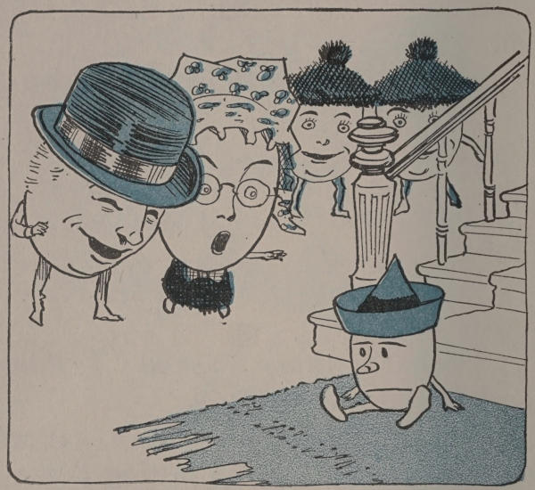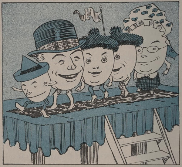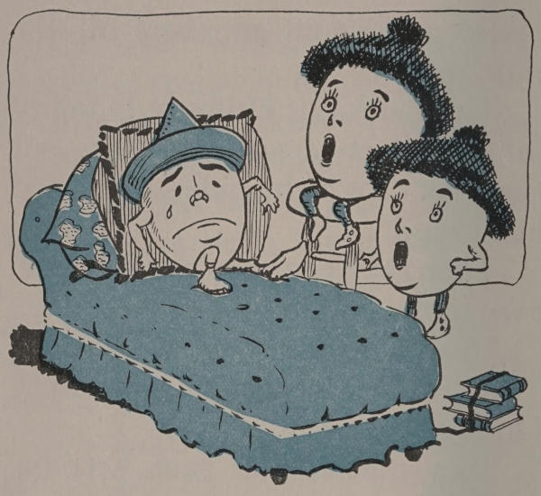 The teacher nodded, and the twins said, “Perhaps Humpty Dumpty is hurt, for he fell down-stairs this morning.”