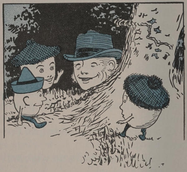 Then Humpty Dumpty led the twins to the window and pointed to the caps lying under the maple tree.