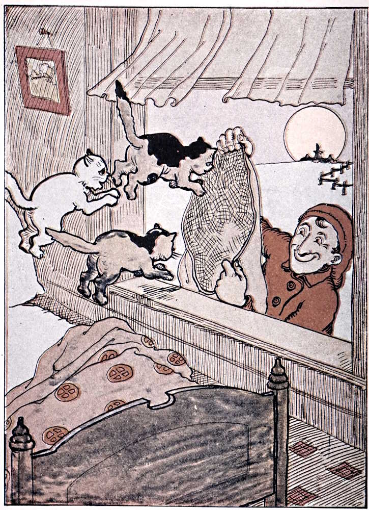 Suddenly the Sandman’s sack broke and out fell the Three Little Kittens.