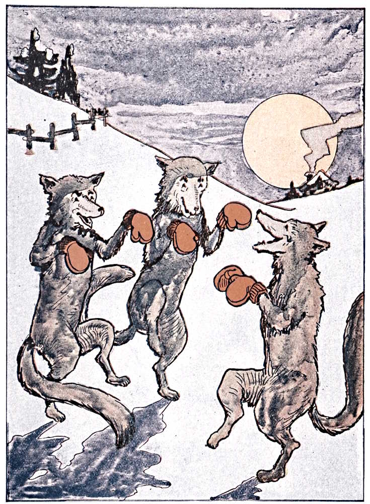 hop and a skip and a bound to get their mittens and Three Little Foxes came tagging them, as if they were playing hide-and-seek.
