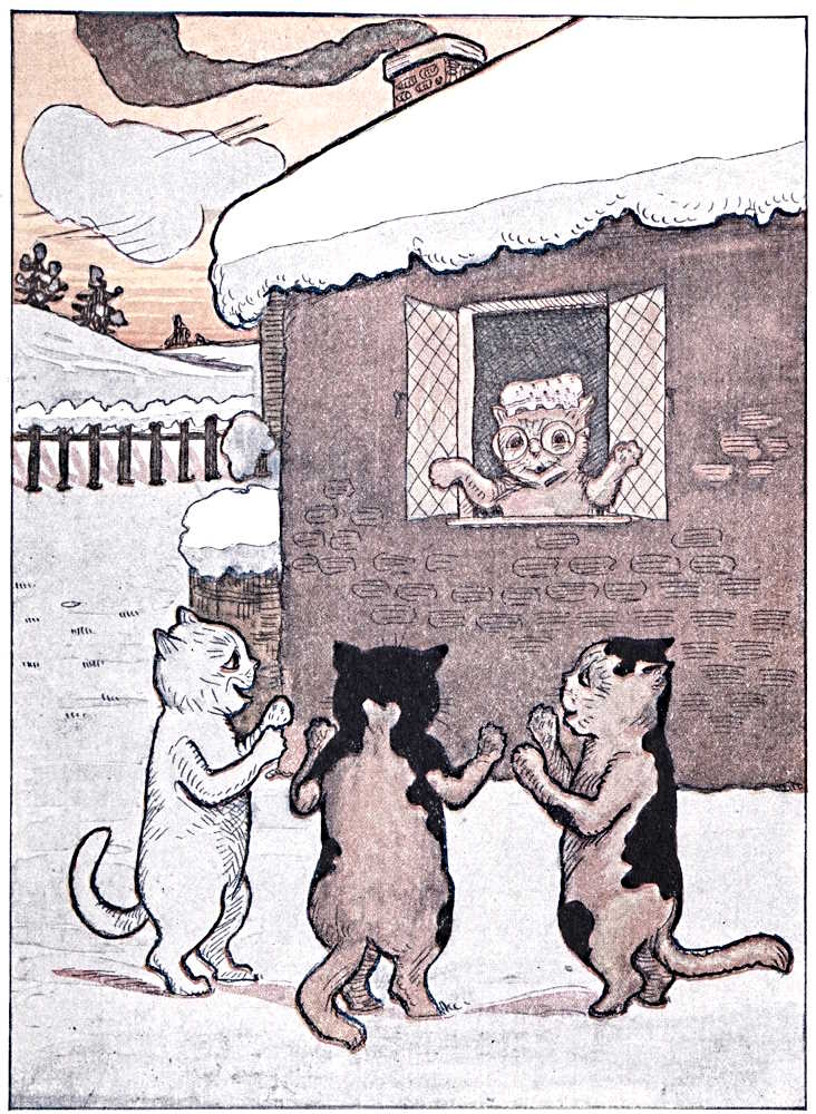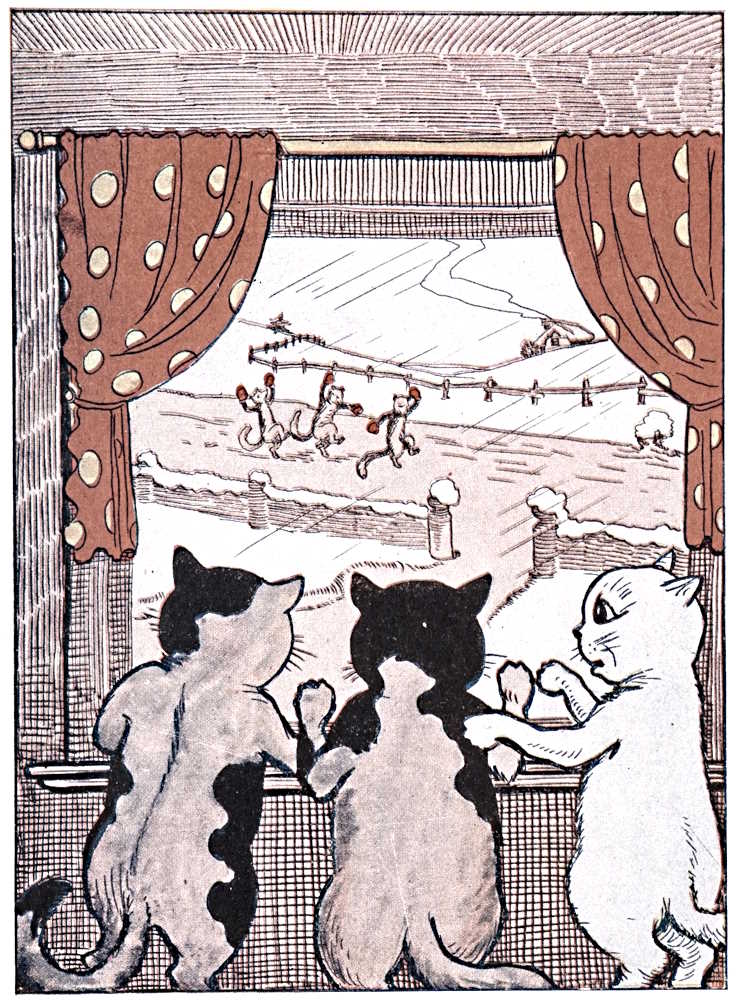 Old Mother Kit-Cat called after them, “Dot, Tot, Trot, you have forgotten your mittens.”