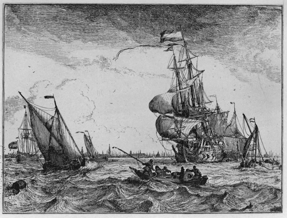 Only the independent masters, therefore, are exhibited here; and from these groups of etchers several of the greatest names in Dutch art are absent. Frans Hals, Jan Steen, Vermeer of Delft, Hobbema, De Hooch—none of these, so far as we know, has left a single plate. Adriaen Brouwer etched a few; but they afford only the slightest indications of his genius. And Albert Cuyp, who is the author of half a dozen{7} small etchings, showed in this line but little of his skill, and did not apparently pursue it farther.