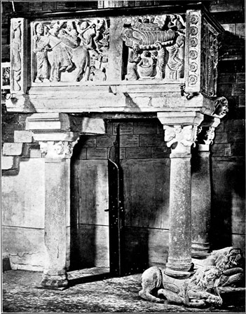 It is strange that Art historians hitherto have made so little of the Comacine Masters. I do not think that Cattaneo mentions them at all. Hope, although divining a universal Masonic Guild, enlarges on all their work as Lombard; Fergusson disposes of them in a single unimportant sentence; and Symonds is not much more diffuse; while Marchese Ricci gives them the credit of the early Lombard work and no more. I was led at length to a closer study of them by the two ponderous tomes on the Maestri Comacini[1] by Professor Merzario, who has got together a huge amount of material from old writers, old deeds, and old stones. But valuable as the material is, Merzario is bewildering in his redundancy, confusing in his arrangement, and not sufficiently clear in his deductions, his viii chief aim being to show how many famous artists came from Lombardy.