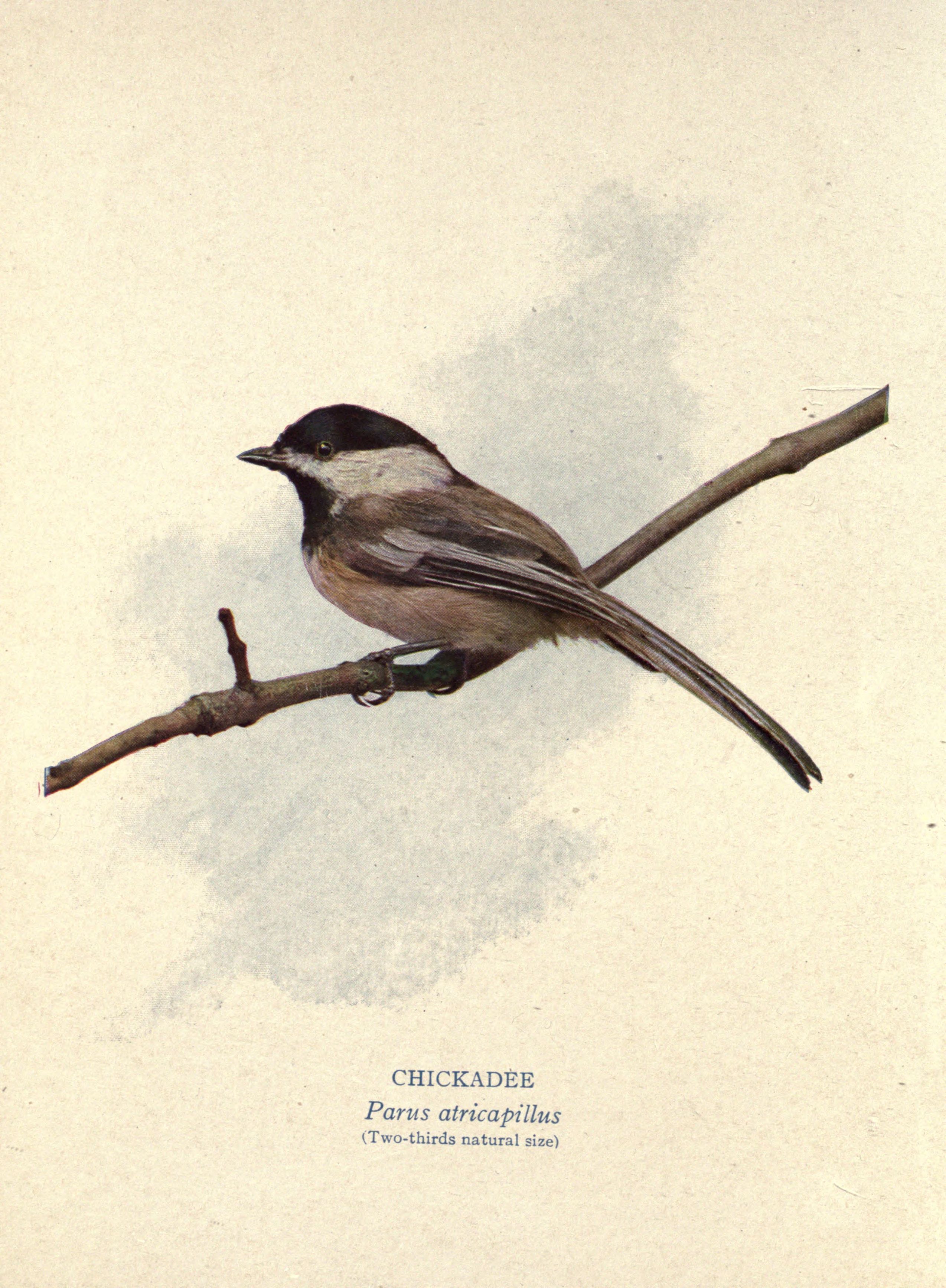 In a Kansas town one March day, as I was returning to the house in which I was lodging, my attention was attracted to a black-capped chickadee, which was flitting about and calling in an agitated way in one of the trees. Two English sparrows, a cock and his mate, were responsible for the little bird's perturbation. What were they doing? Something rude, as usual. Perched on a couple of twigs, they were bending over, stretching out their necks and peering into a small hole in one of the larger branches. The male was especially offensive, standing there and staring into the cavity, and making insolent remarks.