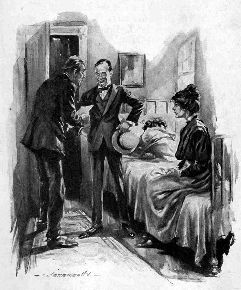 "Something that I think will surprise you," said Mr. Pyecroft. "Something that has completely astounded all of us—particularly this lady who is Mrs. De Peyster's housekeeper, and Miss Harmon, here, who has just returned from a quiet summer in Maine to attend her cousin's funeral. The fact is, gentlemen, to come right to the point, there is to be no funeral."