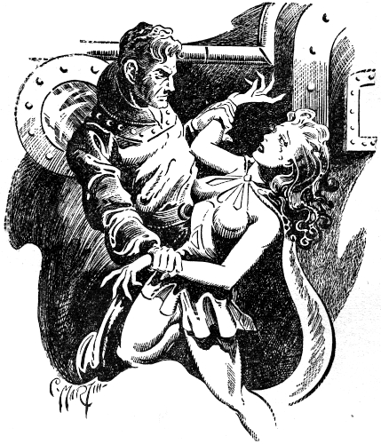Freedman straightened, his face red, to stare with surprise at the slim, honey-haired girl inside the door. She wore the uniform of the Space Merchants of Vestena. Her neat figure seemed molded into the scanty leather breeches and gold-cloth vest. A small light-gun hung loosely from the belt around her waist. Was it his imagination, or did the fingers of her right hand poise lightly over the gun?