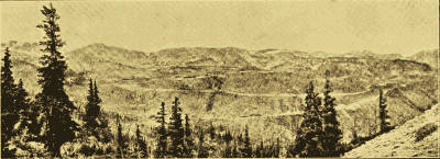 I wondered what else it would be without snow on the ground; but the driver seemed a little too[Pg 131] short of breath to answer. I accounted for his deficiency in this regard because of the altitude; we were above timber line, eleven thousand feet and over from sea-level. The pines had become dwarfed, naked on one side, and were leaning toward the rocks above them, or, in their sturdy struggle for existence, they clung to the precipitous mountain side like matted vines. Looking down from a certain point I observed a large quantity of the road resembling a corpulent angle-worm in several stages of colic. I could not resist appealing to the driver again; I don't think anybody could.