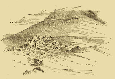 The vicinity is the dwelling-place of desolation; nothing but rocks about us. What had once perhaps been a solid mass of trachyte is split to fragments in the mill of the centuries, and bits from as big as one's fist to the size of one's body or a small house lay tumbled in a confused and monstrous heap, as though there might have been in the remote ages, a great temple here dedicated to the gods of old, and now in shapeless ruins.