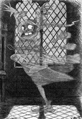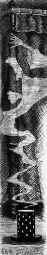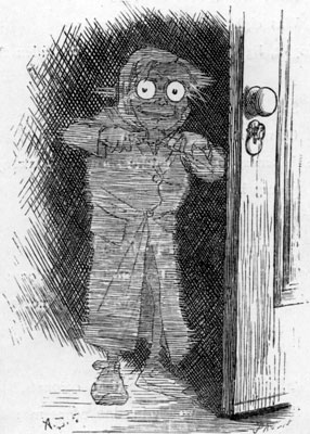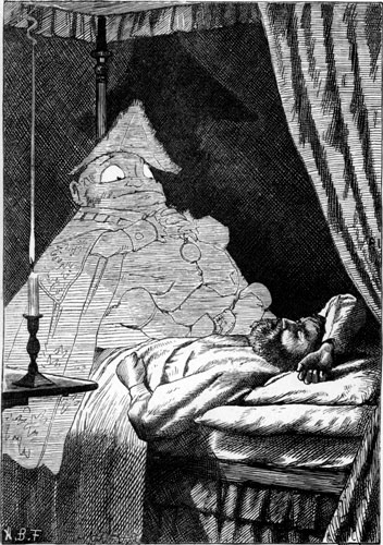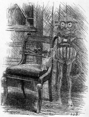 | One winter night, at half-past nine, Cold, tired, and cross, and muddy, I had come home, too late to dine, And supper, with cigars and wine, Was waiting in the study. There was a strangeness in the room, And Something white and wavy Was standing near me in the gloom— I took it for the carpet-broom Left by that careless slavey. |