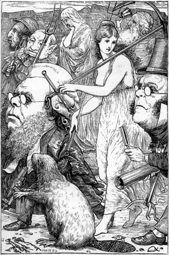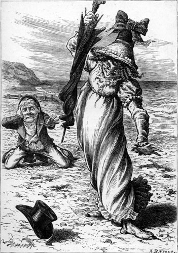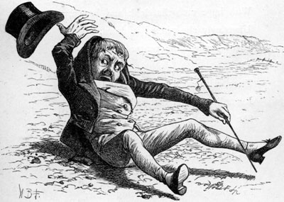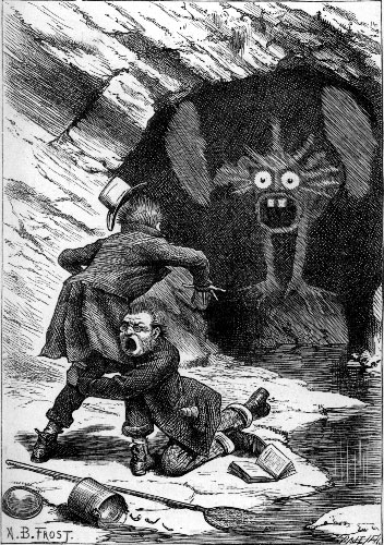 | They sought it with thimbles, they sought it with care; They pursued it with forks and hope; They threatened its life with a railway-share; They charmed it with smiles and soap. They shuddered to think that the chase might fail, And the Beaver, excited at last, Went bounding along on the tip of its tail, For the daylight was nearly past. “There is Thingumbob shouting!” the Bellman said. “He is shouting like mad, only hark! He is waving his hands, he is wagging his head, He has certainly found a Snark!” [Pg 178] They gazed in delight, while the Butcher exclaimed “He was always a desperate wag!” They beheld him—their Baker—their hero unnamed— On the top of a neighbouring crag, Erect and sublime, for one moment of time. In the next, that wild figure they saw (As if stung by a spasm) plunge into a chasm, While they waited and listened in awe. “It’s a Snark!” was the sound that first came to their ears, And seemed almost too good to be true. Then followed a torrent of laughter and cheers: Then the ominous words “It’s a Boo—” Then, silence. Some fancied they heard in the air A weary and wandering sigh That sounded like “—jum!” but the others declare It was only a breeze that went by. |
