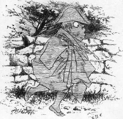 | “If you address a Ghost as ‘Thing!’ Or strike him with a hatchet, He is permitted by the King To drop all formal parleying— And then you’re sure to catch it! [Pg 16] “The Fourth prohibits trespassing Where other Ghosts are quartered: And those convicted of the thing (Unless when pardoned by the King) Must instantly be slaughtered. “That simply means ‘be cut up small’: Ghosts soon unite anew: The process scarcely hurts at all— Not more than when you’re what you call ‘Cut up’ by a Review. “The Fifth is one you may prefer That I should quote entire:— The King must be addressed as ‘Sir.’ This, from a simple courtier, Is all the Laws require: “But, should you wish to do the thing With out-and-out politeness, Accost him as ‘My Goblin King!’ And always use, in answering, The phrase ‘Your Royal Whiteness!’ [Pg 17] “I’m getting rather hoarse, I fear, After so much reciting: So, if you don’t object, my dear, We’ll try a glass of bitter beer— I think it looks inviting.” |