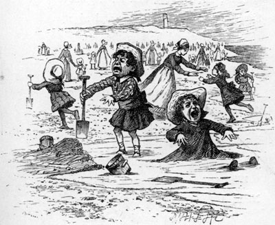 | A Billiard-marker, whose skill was immense, Might perhaps have won more than his share— But a Banker, engaged at enormous expense, Had the whole of their cash in his care. There was also a Beaver, that paced on the deck, Or would sit making lace in the bow: And had often (the Bellman said) saved them from wreck, Though none of the sailors knew how. There was one who was famed for the number of things He forgot when he entered the ship: His umbrella, his watch, all his jewels and rings, And the clothes he had bought for the trip. He had forty-two boxes, all carefully packed, With his name painted clearly on each: But since he omitted to mention the fact, They were all left behind on the beach. The loss of his clothes hardly mattered, because He had seven coats on when he came, With three pair of boots—but the worst of it was He had wholly forgotten his name. |