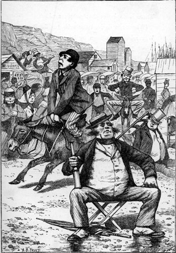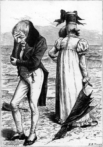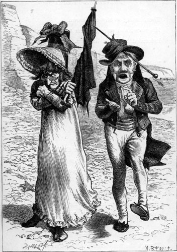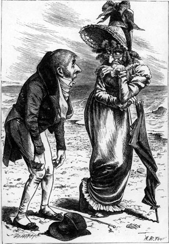| When on the sandy shore I sit, Beside the salt sea-wave, And fall into a weeping fit Because I dare not shave— A little whisper at my ear Enquires the reason of my fear. [Pg 182] I answer “If that ruffian Jones Should recognise me here, He’d bellow out my name in tones Offensive to the ear: He chaffs me so on being stout (A thing that always puts me out).” Ah me! I see him on the cliff! Farewell, farewell to hope, If he should look this way, and if He’s got his telescope! To whatsoever place I flee, My odious rival follows me! For every night, and everywhere, I meet him out at dinner; And when I’ve found some charming fair, And vowed to die or win her, The wretch (he’s thin and I am stout) Is sure to come and cut me out! |