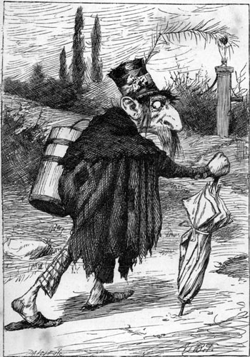 | “It’s quite old-fashioned now to groan When you begin to speak: This is the newest thing in tone—” And here (it chilled me to the bone) He gave an awful squeak. “Perhaps,” he added, “to your ear That sounds an easy thing? Try it yourself, my little dear! It took me something like a year, With constant practising. “And when you’ve learned to squeak, my man And caught the double sob, You’re pretty much where you began: Just try and gibber if you can! That’s something like a job! [Pg 31] “I’ve tried it, and can only say I’m sure you couldn’t do it, e- ven if you practised night and day, Unless you have a turn that way, And natural ingenuity. “Shakspeare I think it is who treats Of Ghosts, in days of old, Who ‘gibbered in the Roman streets,’ Dressed, if you recollect, in sheets— They must have found it cold. “I’ve often spent ten pounds on stuff, In dressing as a Double; But, though it answers as a puff, It never has effect enough To make it worth the trouble. “Long bills soon quenched the little thirst I had for being funny. The setting-up is always worst: Such heaps of things you want at first, One must be made of money! |