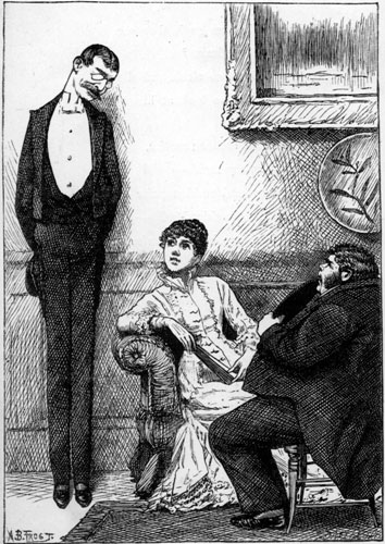 | I had been to the play With my pearl of a Peri— But, for all I could say, She declared she was weary, That “the place was so crowded and hot, and she couldn’t abide that Dundreary.” Then I thought “’Tis for me That she whines and she whimpers!” And it soothed me to see Those sensational simpers, [Pg 188]And I said “This is scrumptious!”—a phrase I had learned from the Devonshire shrimpers. And I vowed “’Twill be said I’m a fortunate fellow, When the breakfast is spread, When the topers are mellow, When the foam of the bride-cake is white, and the fierce orange-blossoms are yellow!” O that languishing yawn! O those eloquent eyes! I was drunk with the dawn Of a splendid surmise— I was stung by a look, I was slain by a tear, by a tempest of sighs. And I whispered “’Tis time! Is not Love at its deepest? Shall we squander Life’s prime, While thou waitest and weepest? Let us settle it, License or Banns?—though undoubtedly Banns are the cheapest.” [Pg 189] “Ah, my Hero,” said I, “Let me be thy Leander!” But I lost her reply— Something ending with “gander”— For the omnibus rattled so loud that no mortal could quite understand her. |