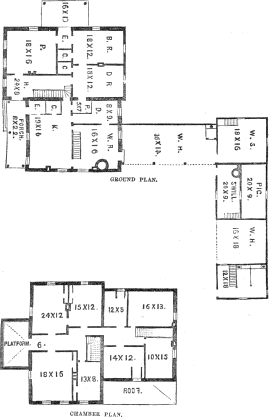 The plans and directions submitted in this work are intended to be of the most practical kind; plain, substantial, and applicable, throughout, to the purposes intended, and such as are within the reach—each in their kind—of every farmer in our country. These plans are chiefly original; that is, they are not copied from any in the books, or from any structures with which the writer is familiar. Yet they will doubtless, on examination, be found in several cases to resemble buildings, xv both in outward appearance and interior arrangement, with which numerous readers may be acquainted. The object, in addition to our own designs, has been to apply practical hints, gathered from other structures in use, which have seemed appropriate for a work of the limited extent here offered, and that may serve to improve the taste of all such as, in building useful structures, desire to embellish their farms and estates in an agreeable style of home architecture, at once pleasant to the eye, and convenient in their arrangement.