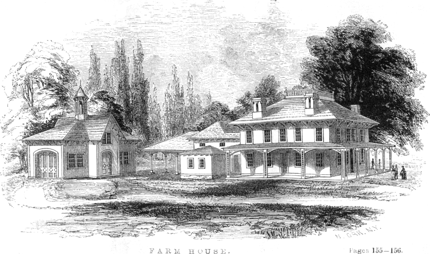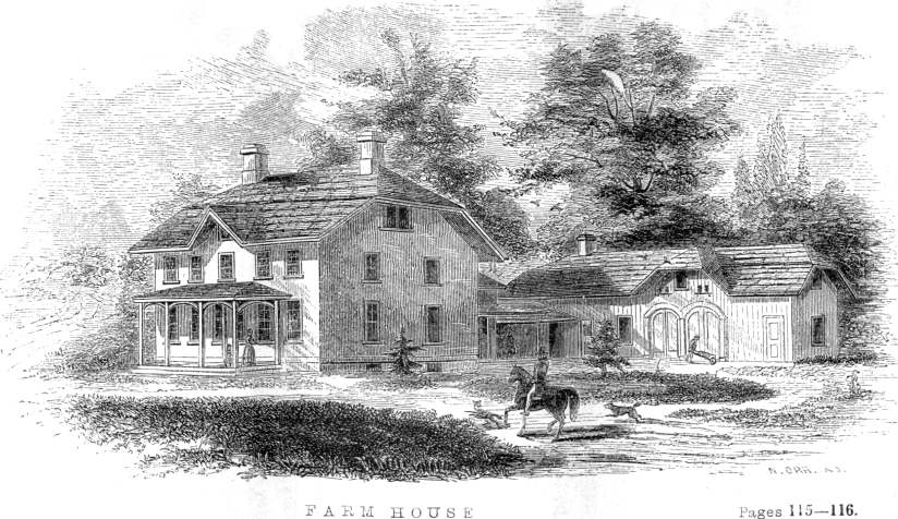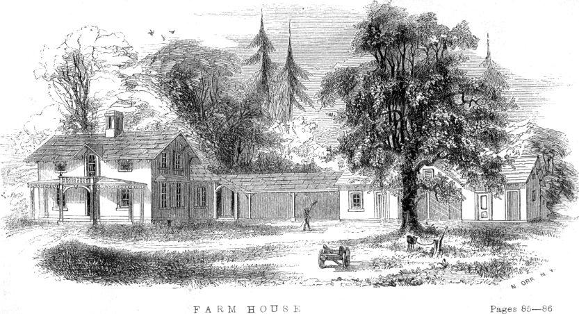 The farm, in its proper cultivation, is the foundation of all human prosperity, and from it is derived the main wealth of the community. From the farm chiefly springs that energetic class of men, who replace the 17 enervated and physically decaying multitude continually thrown off in the waste-weir of our great commercial and manufacturing cities and towns, whose population, without the infusion—and that continually—of the strong, substantial, and vigorous life blood of the country, would soon dwindle into insignificance and decrepitude. Why then should not this first, primitive, health-enjoying and life-sustaining class of our people be equally accommodated in all that gives to social and substantial life, its due development? It is absurd to deny them by others, or that they deny themselves, the least of such advantages, or that any mark of caste be attempted to separate them from any other class or profession of equal wealth, means, or necessity. It is quite as well to say that the farmer should worship on the Sabbath in a meeting-house, built after the fashion of his barn, or that his district school house should look like a stable, as that his dwelling should not exhibit all that cheerfulness and respectability in form and feature which belongs to the houses of any class of our population whatever. Not that the farm house should be like the town or the village house, in character, style, or architecture, but that it should, in its own proper character, express all the comfort, repose, and quietude which belong to the retired and thoughtful occupation of him who inhabits it. Sheltered in its own secluded, yet independent domain, with a cheerful, intelligent exterior, it should exhibit all the pains-taking in home embellishment and rural decoration that becomes its position, and which would make it an object of attraction and regard.