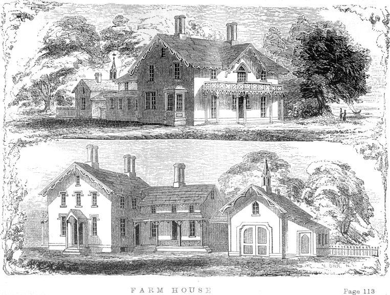That American house-building of the last fifty years is out of joint, requires no better proof than that the 21 main improvements which have been applied to our rural architecture, are in the English style of farm and country houses of two or three centuries ago; so, in that particular, we acknowledge the better taste and judgment of our ancestors. True, modern luxury, and in some particulars, modern improvement has made obsolete, if not absurd, many things considered indispensable in a ruder age. The wide, rambling halls and rooms; the huge, deep fire-places in the chimneys; the proximity of out-buildings, and the contiguity of stables, ricks, and cattle-yards—all these are wisely contracted, dispensed with, or thrown off to a proper distance; but instead of such style being abandoned altogether, as has too often been done, the house itself might better have been partially reformed, and the interior arrangement adapted to modern convenience. Such changes have in some instances been made; and when so, how often does the old mansion, with outward features in good preservation, outspeak, in all the expression of home-bred comforts, the flashy, gimcrack neighbor, which in its plenitude of modern pretension looks so flauntingly down upon it!