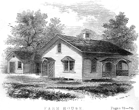 The character of the farm should be carried out so as to express itself in everything which it contains. All should bear a consistent relation with each other. The former himself is a plain man. His family are plain people, although none the less worthy, useful, or exalted, on that account. His structures, of every kind, should be plain, also, yet substantial, where substance is required. All these detract nothing from his respectability or his influence in the neighborhood, the town, the county, or the state. A farmer has quite as much business in the field, or about his ordinary occupations, with ragged garments, out at elbows, and a crownless hat, as he has to occupy xiv a leaky, wind-broken, and dilapidated house. Neither is he any nearer the mark, with a ruffled shirt, a fancy dress, or gloved hands, when following his plough behind a pair of fancy horses, than in living in a finical, pretending house, such as we see stuck up in conspicuous places in many parts of the country. All these are out of place in each extreme, and the one is as absurd, so far as true propriety is concerned, as the other. A fitness of things, or a correspondence of one thing with another, should always be preserved upon the farm, as elsewhere; and there is not a single reason why propriety and good keeping should not as well distinguish it. Nor is there any good cause why the farmer himself should not be a man of taste, in the arrangement and architecture of every building on his place, as well as other men. It is only necessary that he devote a little time to study, in order to give his mind a right direction in all that appertains to this department. Or, if he prefer to employ the ingenuity of others to do his planning,—which, by the way, is, in most cases, the more natural and better course,—he certainly should possess sufficient judgment to see that such plans be correct and will answer his purposes.
