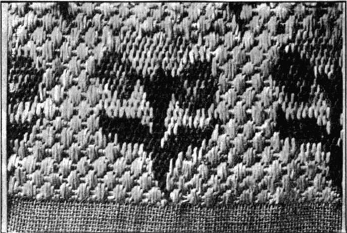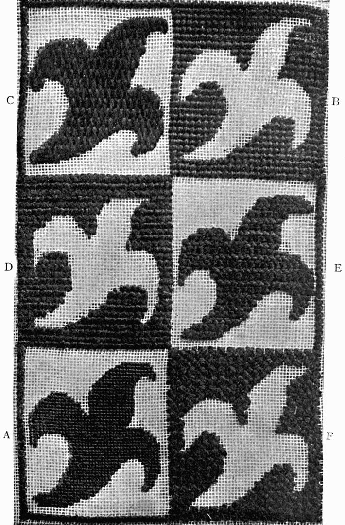 - CANVAS-STITCH—Design comparatively free, but showing in its outline the influence of the rectangular lines of the weaving. Cretan. (Mrs. L. F. D.)