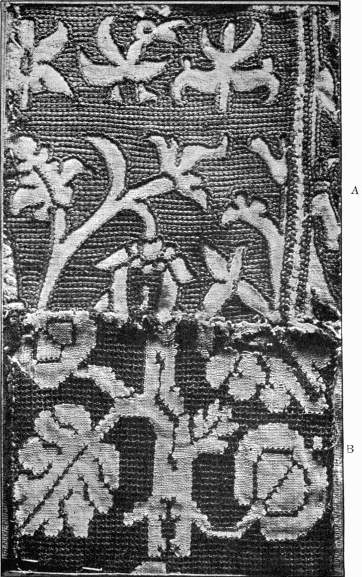 In other respects Art is not overlooked; but it is Art in harness. Design is discussed with reference to stitch and stuff, and stitch and stuff with reference to their use in ornament. It has been endeavoured also to show the effect needlework has had upon pattern, and the ways in which design is affected by the circumstance that it is to be embroidered.