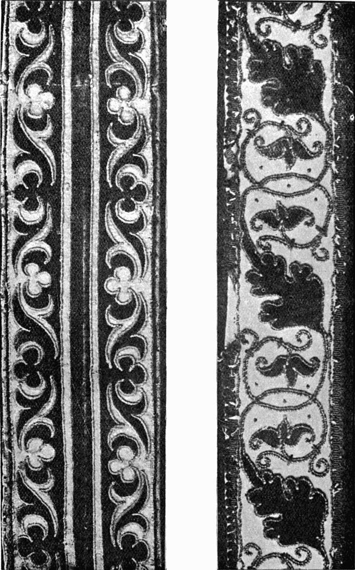 - CANVAS-STITCH in coloured silk upon linen. The band Italian, the foliated diaper Oriental. (Mrs. L. F. D.)